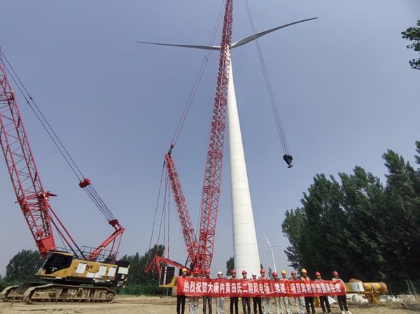 为保证项目“5.30”全容量并网,自春节后复工以来,项目团队科学制定施工计划,全体人员敢于担当、狠抓落实,顺利完成风机基础施工及风机吊装等关键节点,于5月27日高质量完成施工任务,提前实现项目“5.30”投产运行,得到业主、总包单位一致好评。