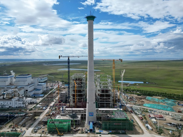 华能电力工程部满洲里热电厂扩建工程烟囱外筒顺利封顶